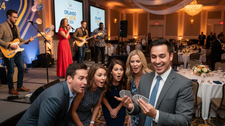 Between-set entertainment keeps momentum. DJs can bridge breaks smoothly, and photo booths (including 360 booths and Glambot-style experiences) create shareable moments. Corporate events can add interactive stations, games, and activations to keep guests engaged.